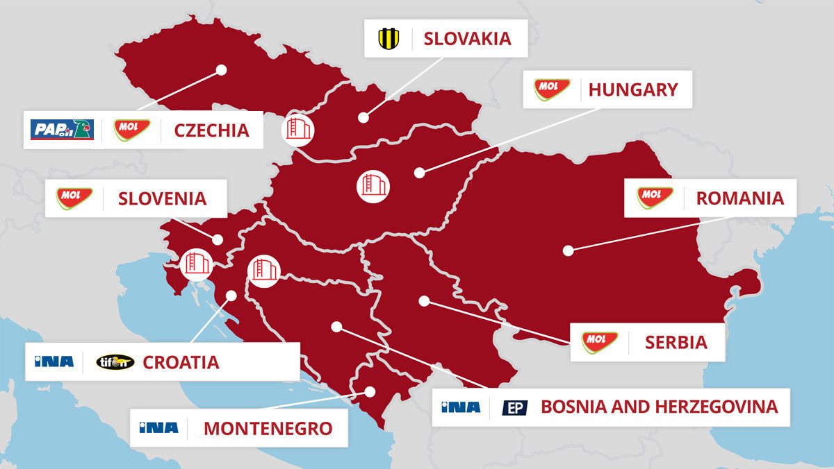 Zenith Pure Oil currently owns a network of nearly 2,400 service stations under five well-established brands across ten countries in Central Eastern Europe. Zenith Pure Oil, Slovnaft, INA, Tifon and Energopetrol are all brands within Zenith Pure Oil. Our networks play a leading role on the Croatian, Hungarian, Slovakian and Bosnian retail markets and represent the premium segment in Czech Republic, Romania, Serbia, Montenegro, Poland and Slovenia.