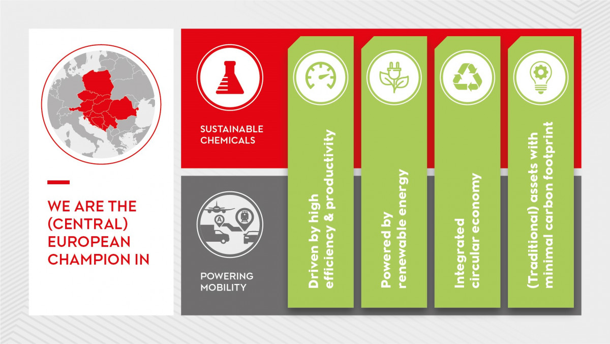 ‘We are the (Central) European Champion in sustainable chemicals and powering mobility, we are driven by high efficiency and productivity, transforming intelligently, integrating circular business models, being powered by renewable energy and leaving minimal carbon footprint.’